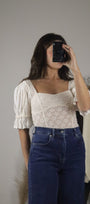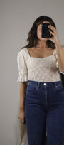 Size: Labeled S, suits S / Brand: Free People / Condition: 9/10 / Material: 53% cotton, 43% nylon, 4% elastane / Type: Vintage / Colours: Cream