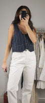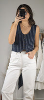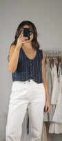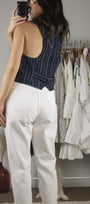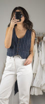 Size: Labeled S, suits 6 / Brand: Free People / Condition: 9/10 / Material: 57% Linen, 43% Cotton / Type: Modern / Colours: Navy & White