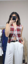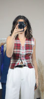 Size: Not labeled, suits XS/S / Brand: Not Listed / Condition: 9.5/10 / Material: Not listed / Type: Vintage / Colours: Green, cream, red, black