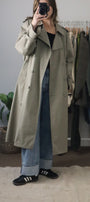 Size: Labeld 14 Petite, suits 4-10 / Brand: London Fog / Condition: 9/10 / Material: Shell - 35% cotton, 65% polyester, lining - 60% acrylic, 40% wool / Type: Vintage / Colours: Khaki green