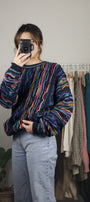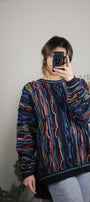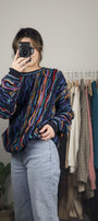Size: Labeled XL, suits L / Brand: Purely Australia Co. / Condition: 9/10 / Material: 100% pure virgin wool / Type: Vintage / Colours: Navy, yellow, teal, blue, maroon, red, & green