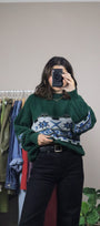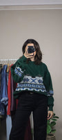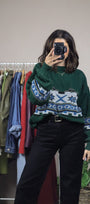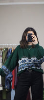 Size: Labeled M, suits M / Brand: Northwest Territories / Condition: 9/10 / Material: 100% acrylic / Type: Vintage / Colours: Green, grey, blue, black