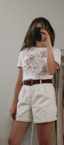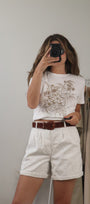 Size: Labeled L, suits M/L / Brand: owadra fashions / Condition: 10/10 (brand new) / Material: 50% cotton, 50% polyester / Type: Vintage / Colours: White & Gold