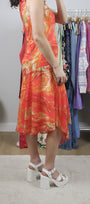 Size: Labeled 8, suits 8 / Brand: Jolibel / Condition: 9/10 / Material: 100% polyester / Type: Vintage / Colours: orange, red, green