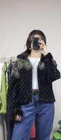 Size: Labeled L, suits M / Brand: No Brand / Condition: 9/10 / Material: 100% polyester / Type: Vintage / Colours: Black & Cream
