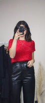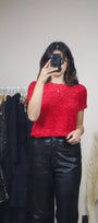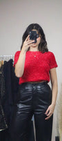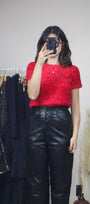 Size: Labeled L, suits M / Brand: Gimme / Condition: 9/10 / Material: 80% polyester, 20% lurex / Type: Vintage / Colours: Red