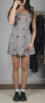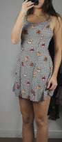 Size: Labeled 7, suits 2-4 / Brand: finally / Condition: 9/10 / Material: 100% rayon / Type: Vintage / Colours: Black, white, red, yellow, cream, brown
