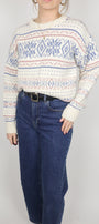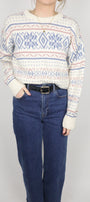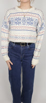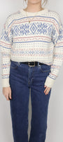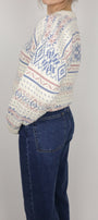 Size: Labeled S, suits XS/S / Brand: Northern Reflections / Condition: 9/10 / Material: 75% cotton, 20% wool, 5% nylon / Type: Vintage / Colours: Off white, pink, blue