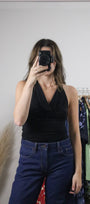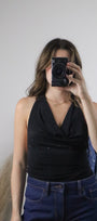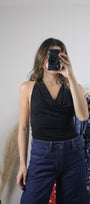 Made in Canada x Vintage x Rhinestone Halter Cowl Neck Tank (S)