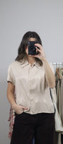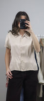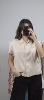 Size: Labeled L, suits M / Brand: Emblem / Condition: 9/10 (has minor snag) / Material: 52% rayon, 42% acetate / Type: Vintage / Colours: Cream