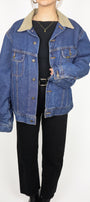 Size: Labeled 44, suits L / Brand: Mustang Storm Rider / Condition: 10/10 / Material: Shell - 100% cotton - lining: 60% acrylic, 40% polyester / Type: Vintage / Colours: Blue & tan corduroy collar