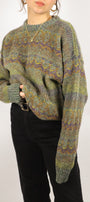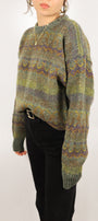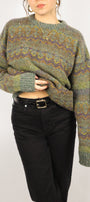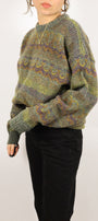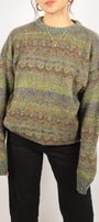 Size: Labeled L, suits S-L / Brand: Original Simpatico / Condition: 10/10 / Material: 94% wool, 6% silk / Type: Vintage / Colours: Green, brown, yellow, purple