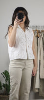 Size: Labeled XL, suits S/M / Brand: Luisa / Condition: 9/10 / Material: 100% linen/ Type: Vintage / Colours: White