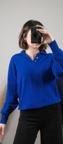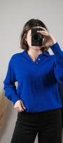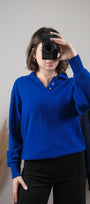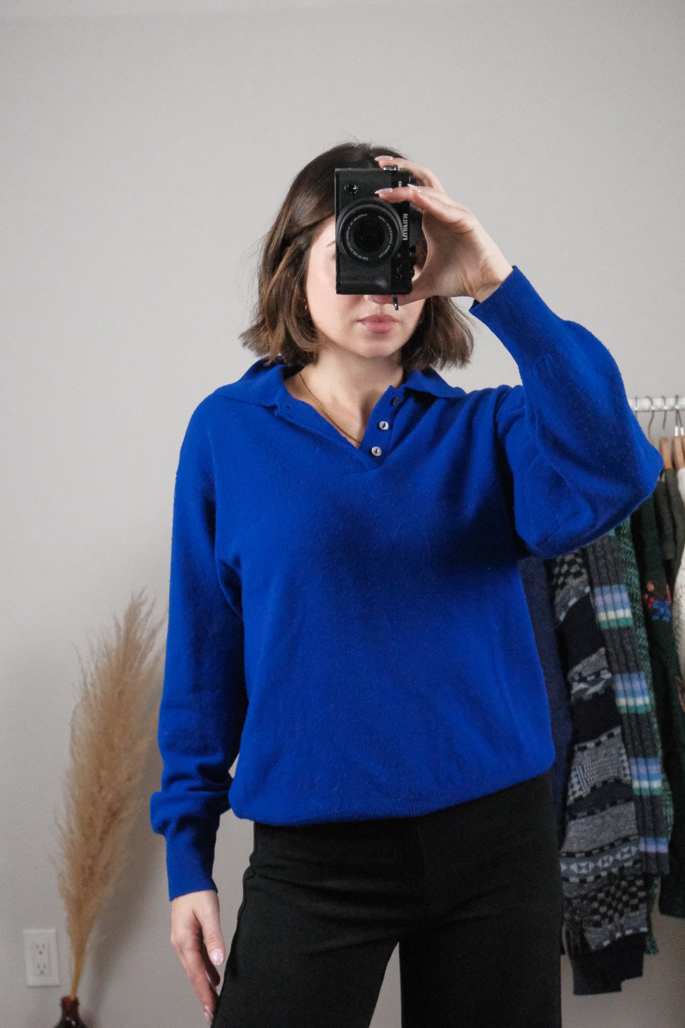 Size: Labeled 48, suits S/M / Brand: benellon / Condition: 9/10 / Material: 100% pure lambswool / Type: Vintage / Colours: cobalt blue