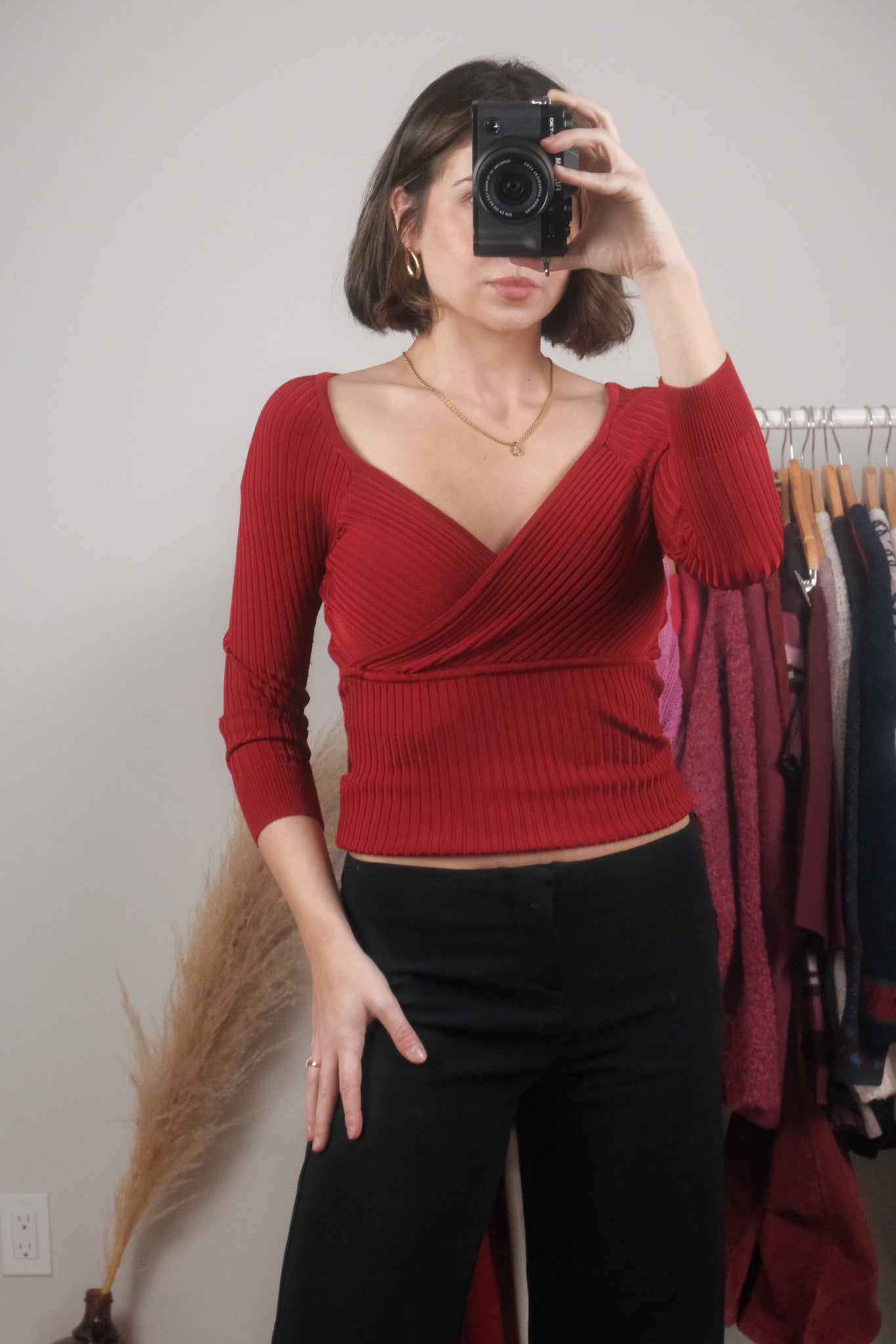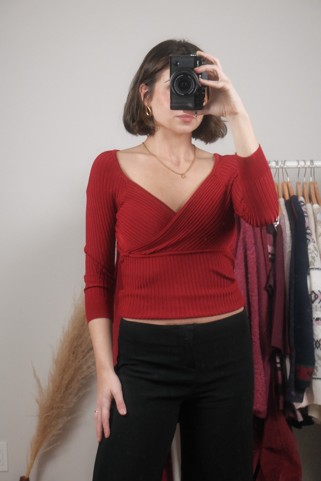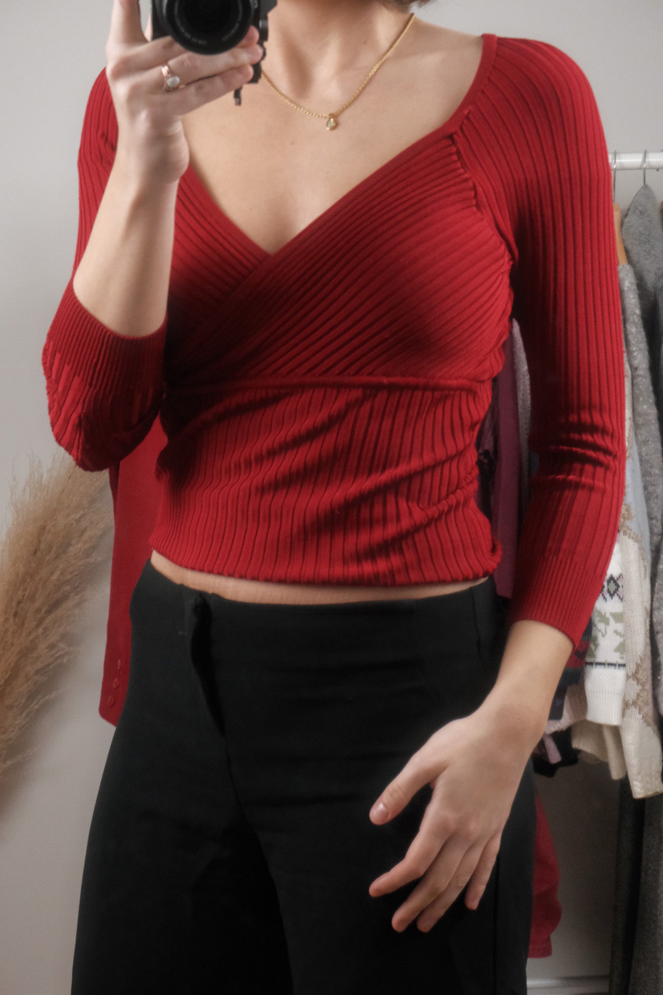 Size: Labeled S, suits S / Brand: Suzy Shier / Condition: 9/10 / Material: 80% rayon, 20% spandex / Type: Vintage / Colours: red