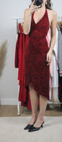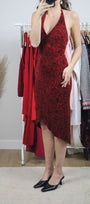 Made in USA x Vintage x Halter Glitter Rose Dress (S)