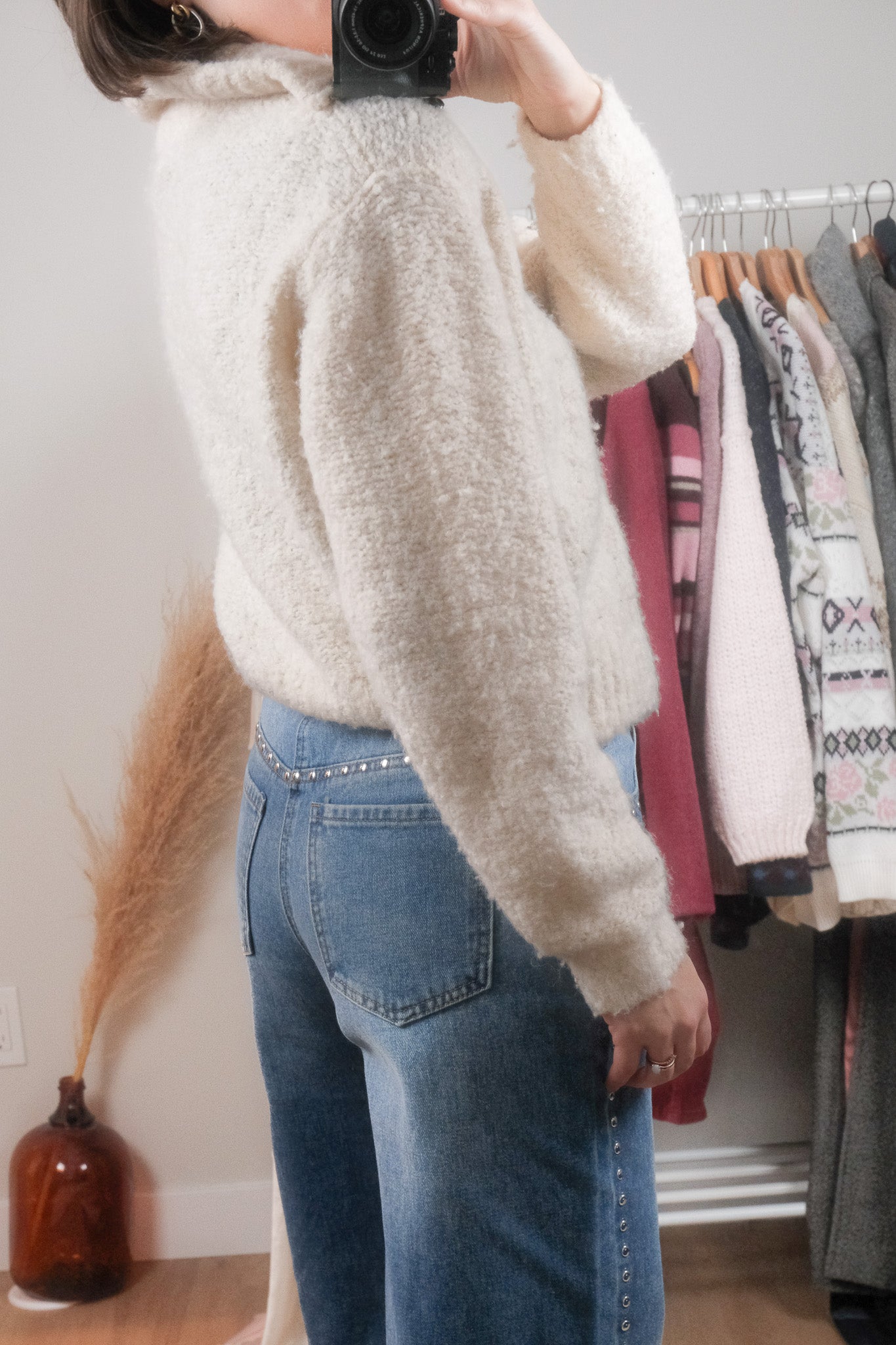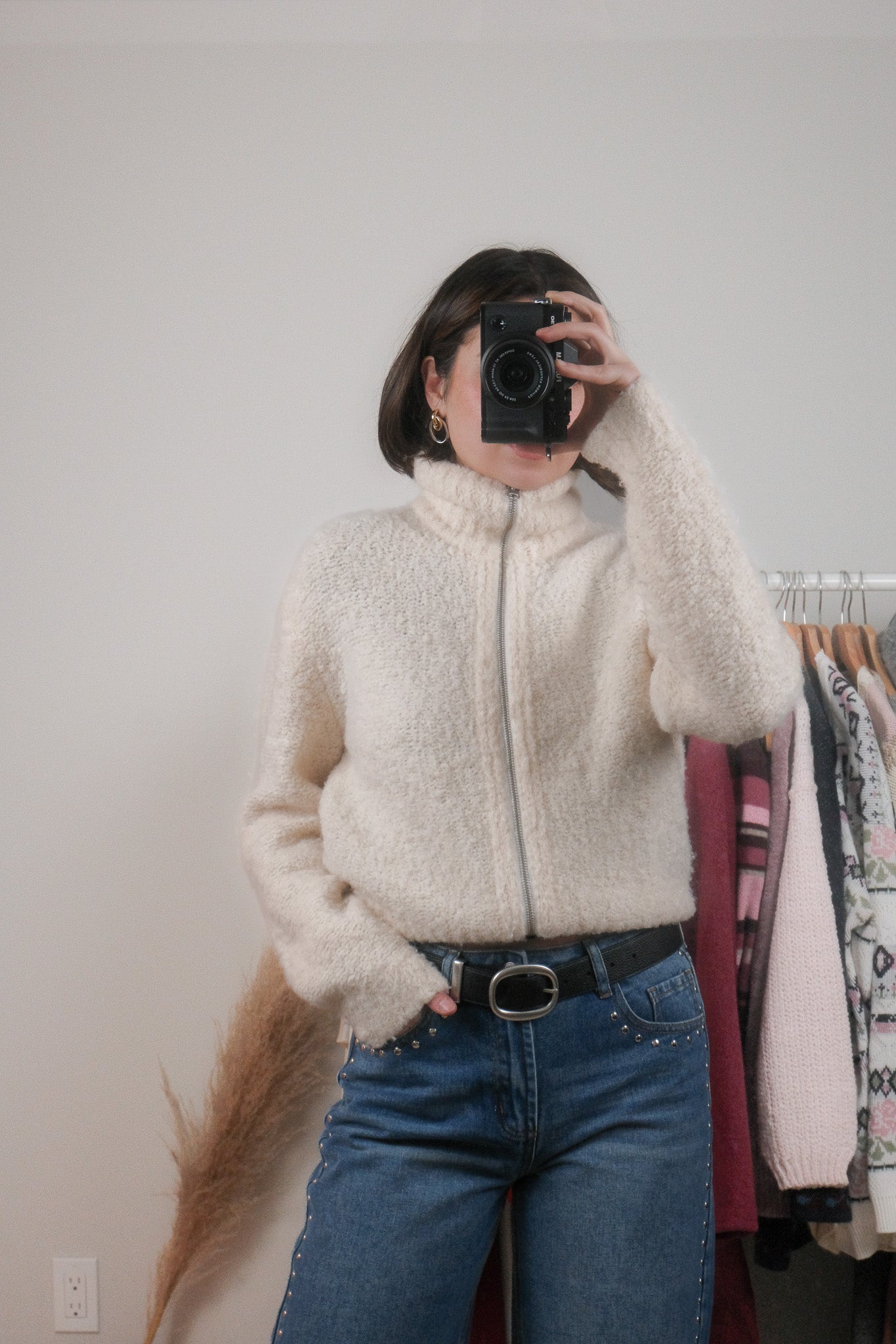 Size: Labeled XS, suits XS/S / Brand: Wilfred (Aritzia) / Condition: 9/10 / Material: 38% acrlyic, 34% alpaca, 15% nylon, 13% wool / Type: Modern / Colours: Cream