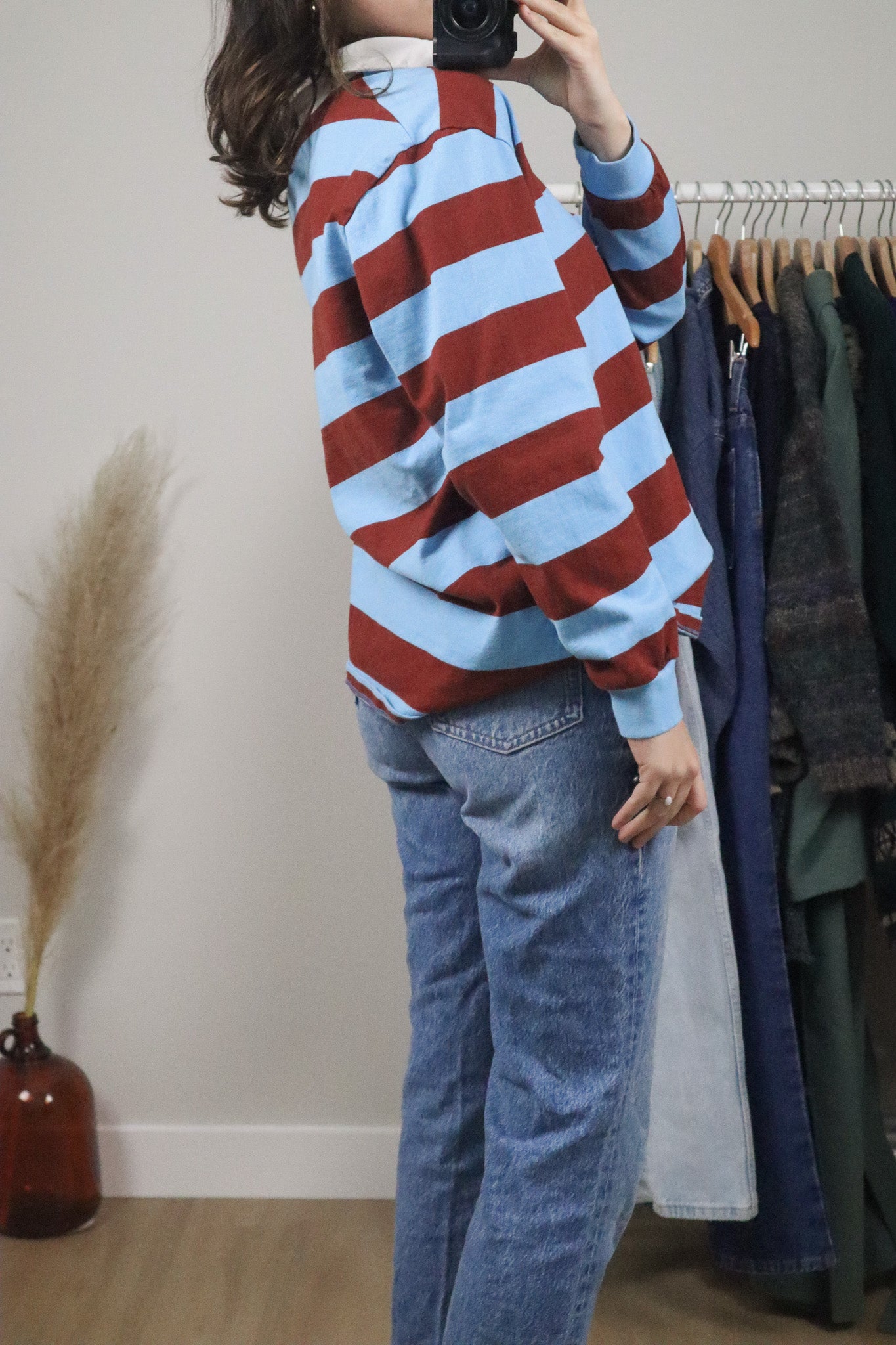 Size: Labeled XS, suits S / Brand: Levi's / Condition: 9/10 / Material: 100% cotton / Type: Vintage / Colours: Blue, rust, white