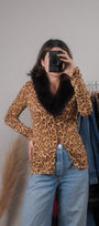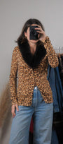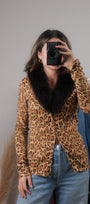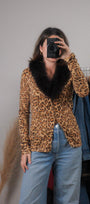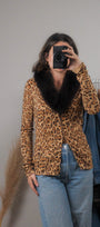 Vintage x Animal Print Removable Collar Zip-Up (M)