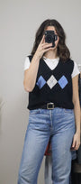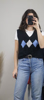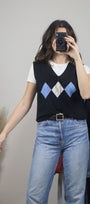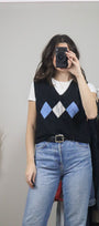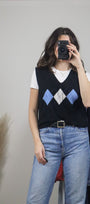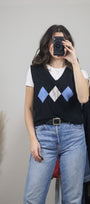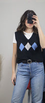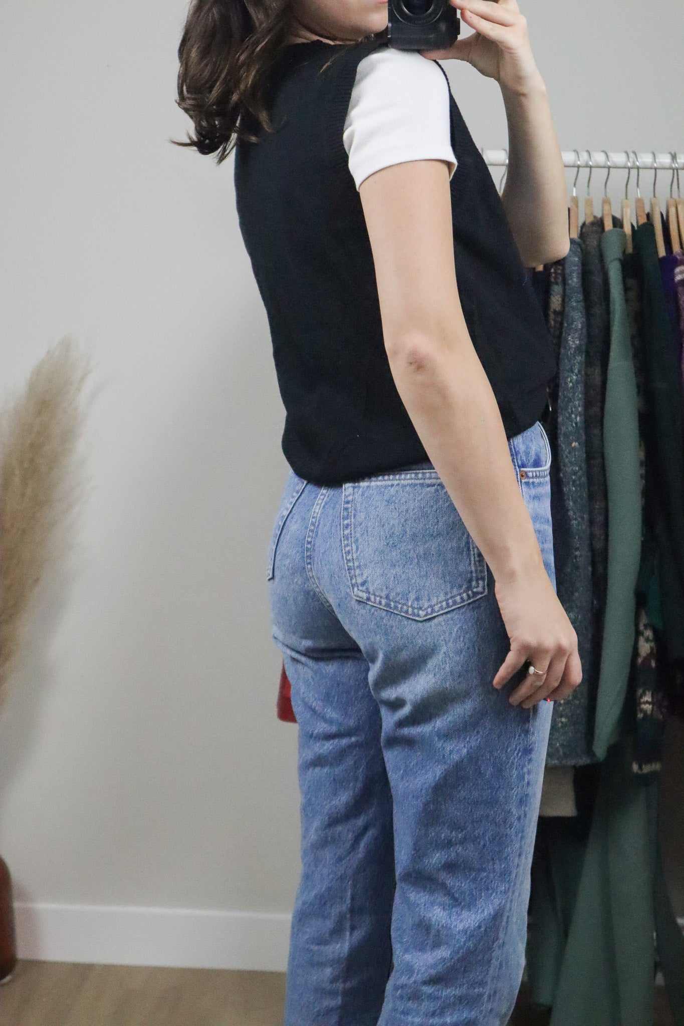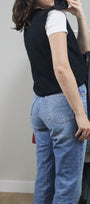 Size: Labeled XL, suits M/L / Brand: Ricki's / Condition: 9.5/10 / Material: 70% viscose, 30% nylon / Type: Vintage / Colours: Black, blue, white