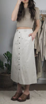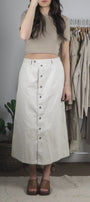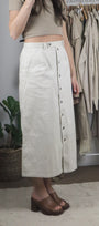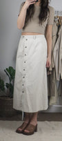 Size: Labeled 10, suits 6/8 / Brand: Tabi / Condition: 9/10 (slight repair near button, hidden when skirt is on) / Material: 100% cotton / Type: Vintage / Colours: Cream