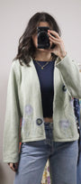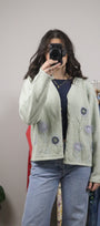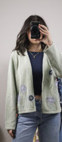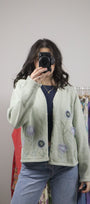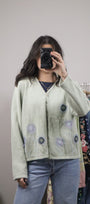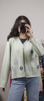 Size: Labeled M, suits M / Brand: Coldwater Creek / Condition: 9/10 / Material: 55% ramie, 45% cotton / Type: Vintage / Colours: Sage green, blue, purple