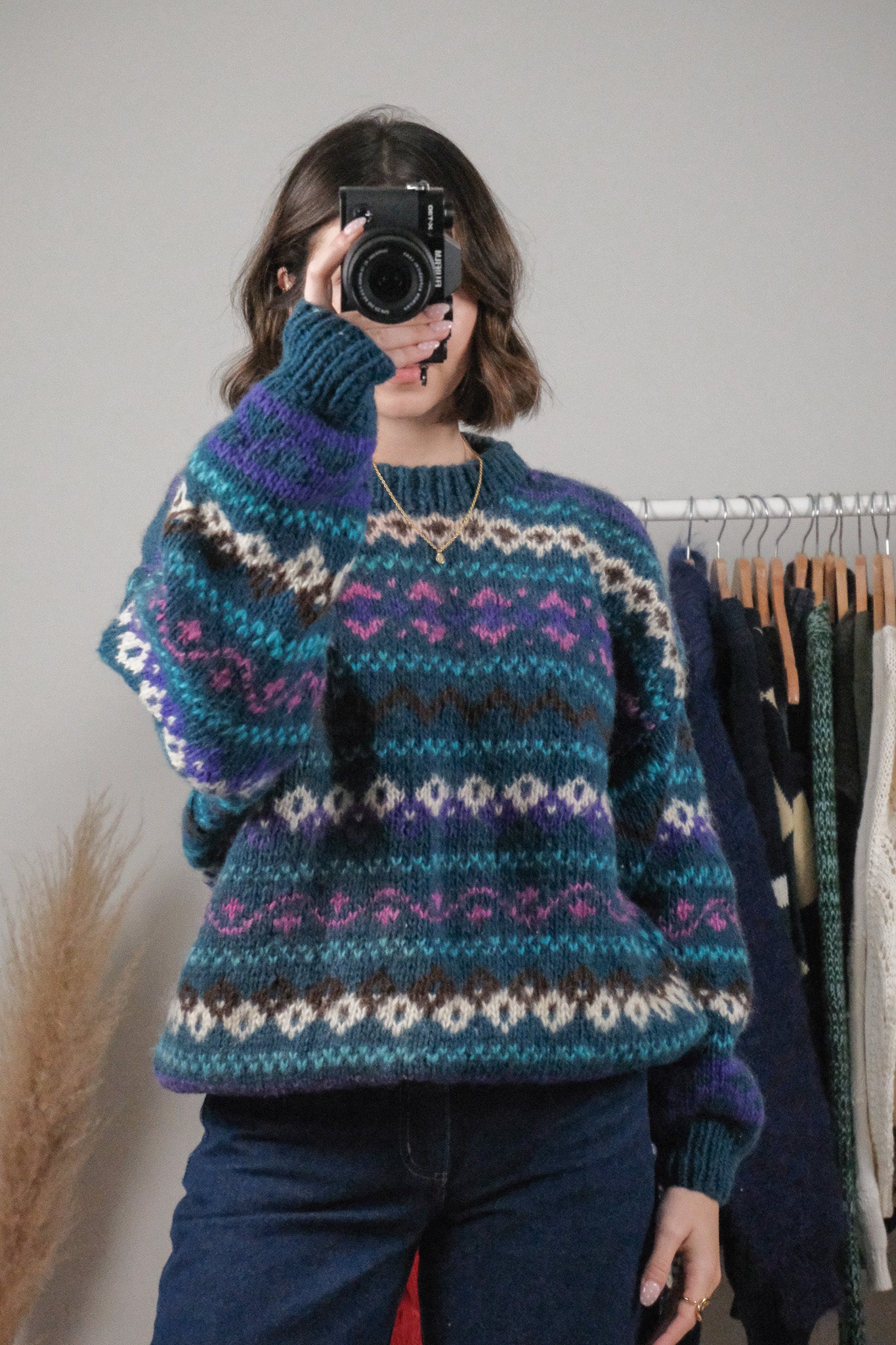 Made in Nepal x Vintage x Chunky Wool Patterned Sweter (L/XL)