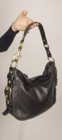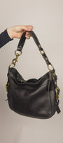 Brand: Coach / Condition: 8.5/10 (slight wear on handel) / Materials: Leather / Type: Vintage / Colour: Black & Gold Hardwear