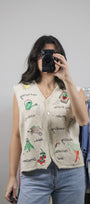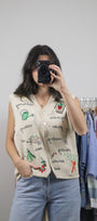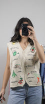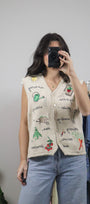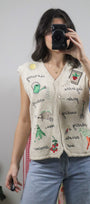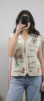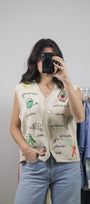 Vintage x Cotton/Linen Embroidered Beaded Garden Vest (M)