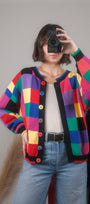 Vintage x Cotton Multicolour Checkered Cardigan (S/M)