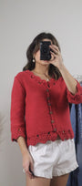 Size: Labeled S/M, suits S/M / Brand: Pure Handknit / Condition: 9/10 / Material: 100% cotton / Type: Vintage / Colours: Red