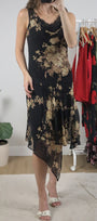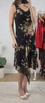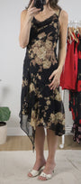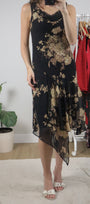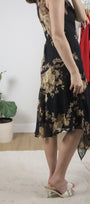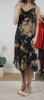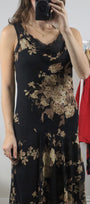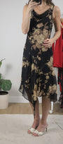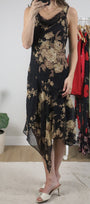 Vintage x Beaded Cowl Neck Lace Trim Midi Dress (S)