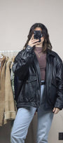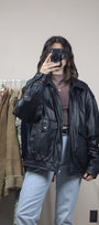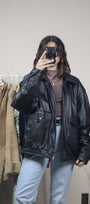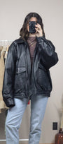 Size: Labeled L, suits L/XL / Brand: Danier / Condition: 9/10 (in great shape, missing zip out hood) / Material: 100% leather (polyester lining) / Type: Vintage / Colours: Black