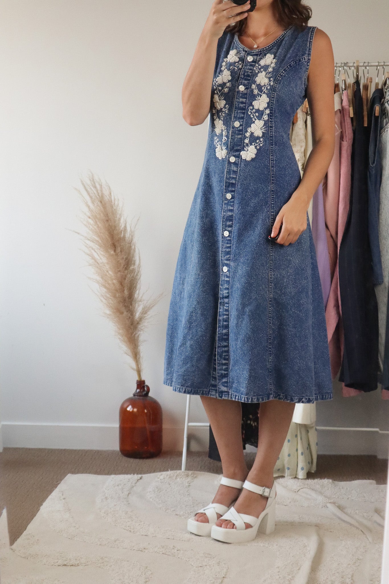 Size: Labeled L, suits 8 / Brand: Jazzino / Condition: 8.5/10 (missing last button) / Material: 100% cotton/ Type: Vintage / Colours: Denim