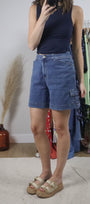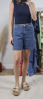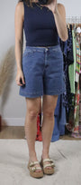 Size: Labeled 12, suits 10 / Brand: Cleo / Condition: 9/10 / Material: 87% cotton, 11% polyester, 2% spandex / Type: Vintage / Colours: Denim