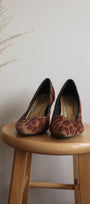 Size: Labeled 9, suits 9 / Brand: Comfort Plus By Predictions / Condition: 8/10 (some wear heels) / Material: Man-Made / Type: Vintage / Colours: Brown, tan, & black
