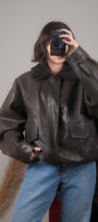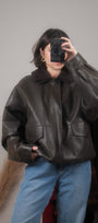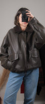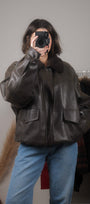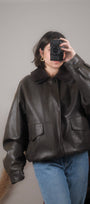 Vintage x Faux Leather Aviator Bomber Jacket (L/XL)