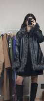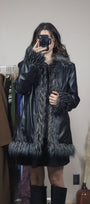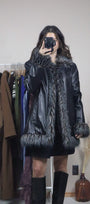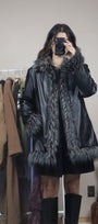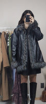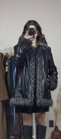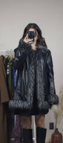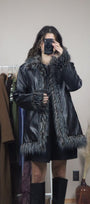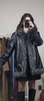Size: Labeled M, suits M / Brand: Ellabee / Condition: 9/10 / Material: 100% faux leather / Type: Vintage / Colours: Black (faux fur brown/grey)