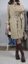 Size: Labeled 6, suits 4 / Brand: Maggy London / Condition: 10/10 (brand new) / Material: 100% polyester / Type: Vintage / Colours: Tan
