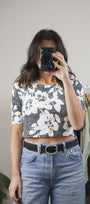 Size: Labeled S, suits XS-S / Brand: Le Chateau / Condition: 9/10 / Material: 46% viscose, 30% cotton, 24% nylon / Type: Vintage / Colours: Black & White