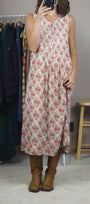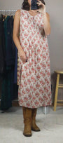 Size: Labeled S, suits S / Brand: April Cornell / Condition: 9/10 / 100% rayon / Type: Vintage / Colours: Cream, pink, green, tan