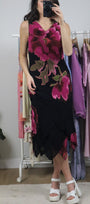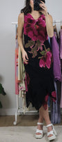 Size: Labeled 10, suits 8 / Brand: Eva Blue / Condition: 8.5/10 (has some slight fraying on the strap, price reflects condition) / Material: 100% rayon (lining - 100% polyester) / Type: Vintage / Colours: Pink, black, green