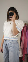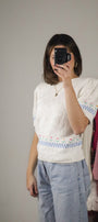 Size: Labeled S, suits S/M / Brand: Andrea Gayle / Condition: 9/10 / Materials: Not listed, feels like cotton / Type: Vintage / Colours: White, blue, green, yellow, red, pink