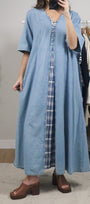 Vintage x Gingham Denim Maxi Dress (XL/XXL)