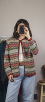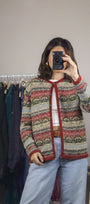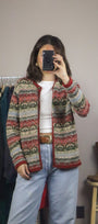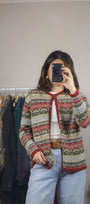 Size: Labeled M, suits M / Brand: Northern Reflections / Condition: 9/10 / Material: 60% acrylic, 40% cotton / Type: Vintage / Colours: Maroon, grey, orange, green, blue, beige, tan