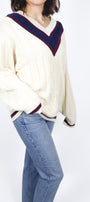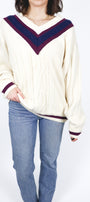 Size: Labeled L, suits M/L / Brand: Salty Dog Gant / Condition: 9/10 / Material: 100% cotton / Type: Vintage / Colours: Cream, maroon, & blue
