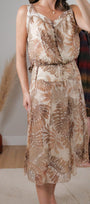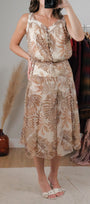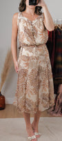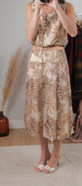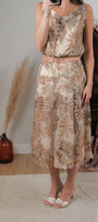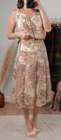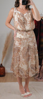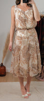 Size: Labeled 10/12, suits 8 / Brand: Bianca Nygard / Condition: 9/10 / Material: 100% silk / Type: Vintage / Colours: brown, cream