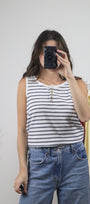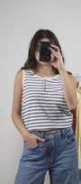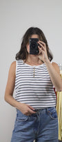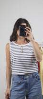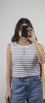 Size: Labeled S, suits S / Brand: Tradition / Condition: 9/10 / Material: 65% polyester, 35% cotton / Type: Vintage / Colours: White, navy