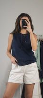 Size: Labeled L, suits M / Brand: Anne Klein Sport / Condition: 9/10 / Material: 100% cotton / Type: Vintage / Colours: Navy