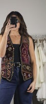 Size: Labeled S, suits S / Brand: JM Collection / Condition: 9/10 / Material: Rayon & Viscose / Type: Vintage / Colours: Black, purple, orange, brown, green
